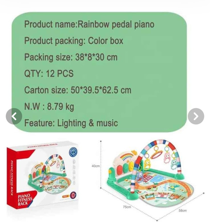 دارای پيانو در پايين پای كودک كه با ضربه زدن به آن توليد صدا ميكند