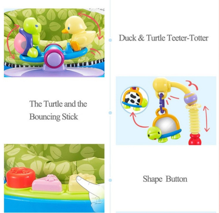 بازی با این جامپر سبب افزایش قوای حرکتی کودک و همچنین افزایش خلاقیت و قدرت تجسم او به دلیل وسایل بازی متعدد روی میز می شود
