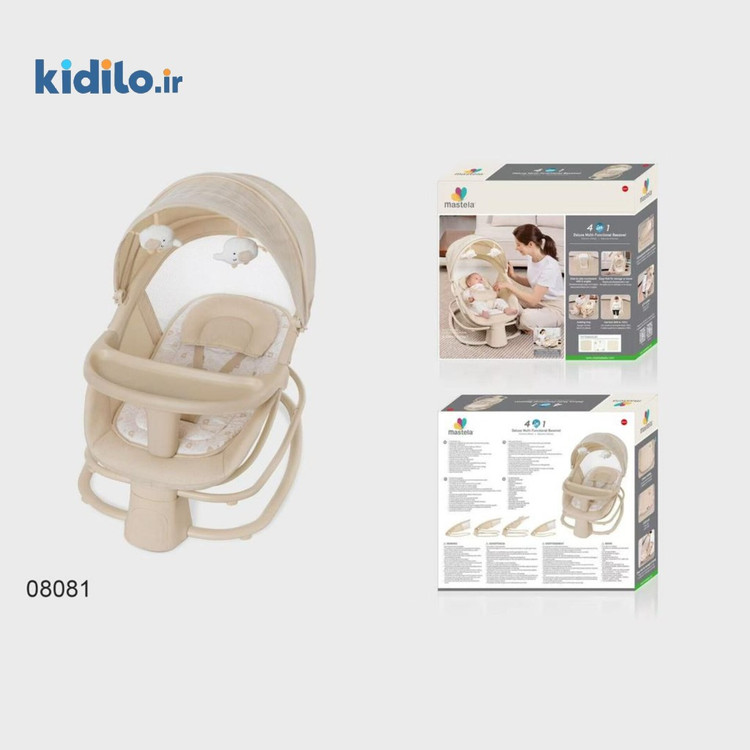 قابلیت تنظیم تكه گاه و خواب كامل برای نوزاد تازه متولدشده، دارای توری پشه بند دور كش دار برای فصول گرم سال، دارای حركت بسیار نرم به چپ و راست (بیصدا)، دارای سینی غذاخوری كودك با قابلیت جداسازی آسان، دارای تشك نرم و ضدتعریق با قابلیت جداسازی و شستشو آسان، دارای صندلی كاملاً ارگونومیك با قابلیت تنظیم و جلوگیری از كولیك در نوزادان