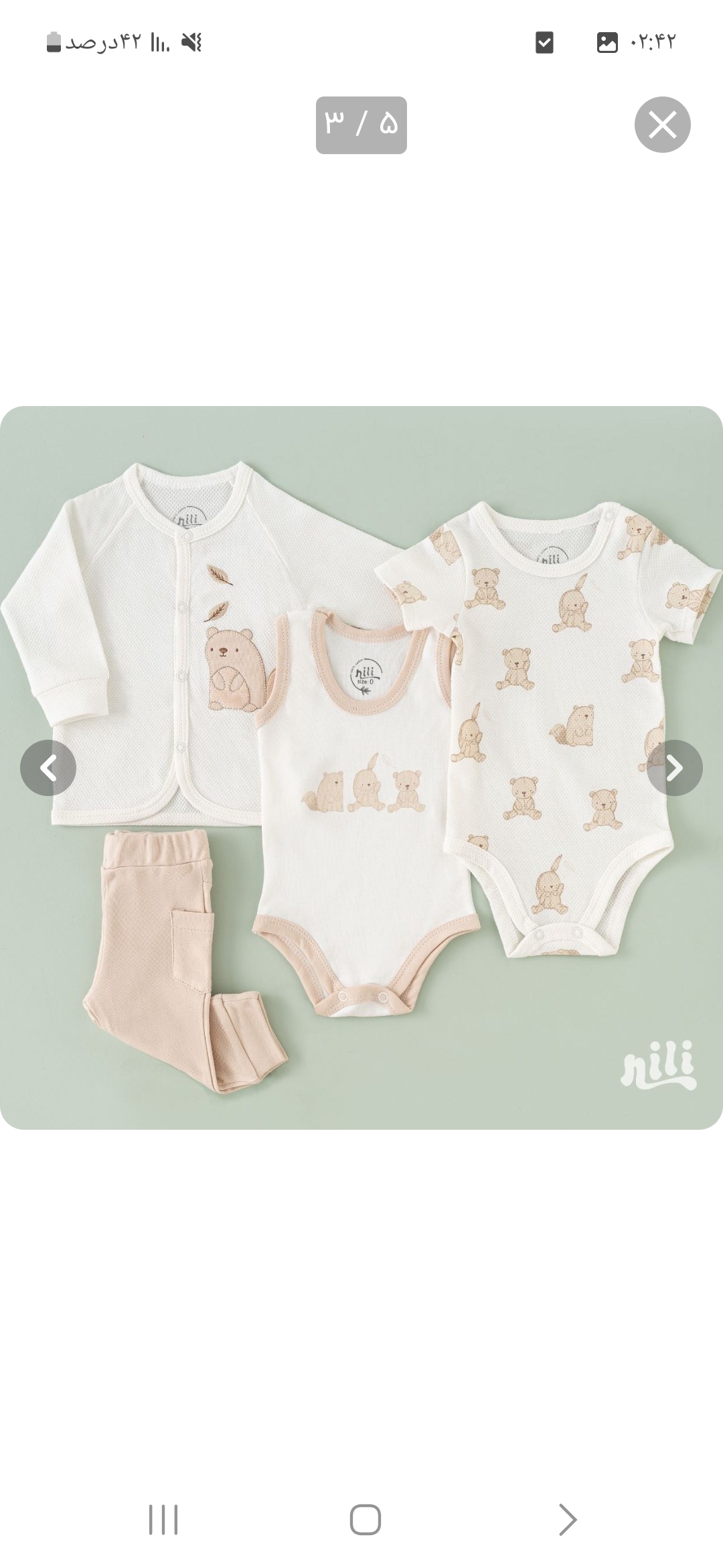 100% نخ پنبه - ضد حساسیت - تمام کار های گلدوزی شده داخل لباس کاور نخی داره و بدن کودک رو اذیت نمیکنه